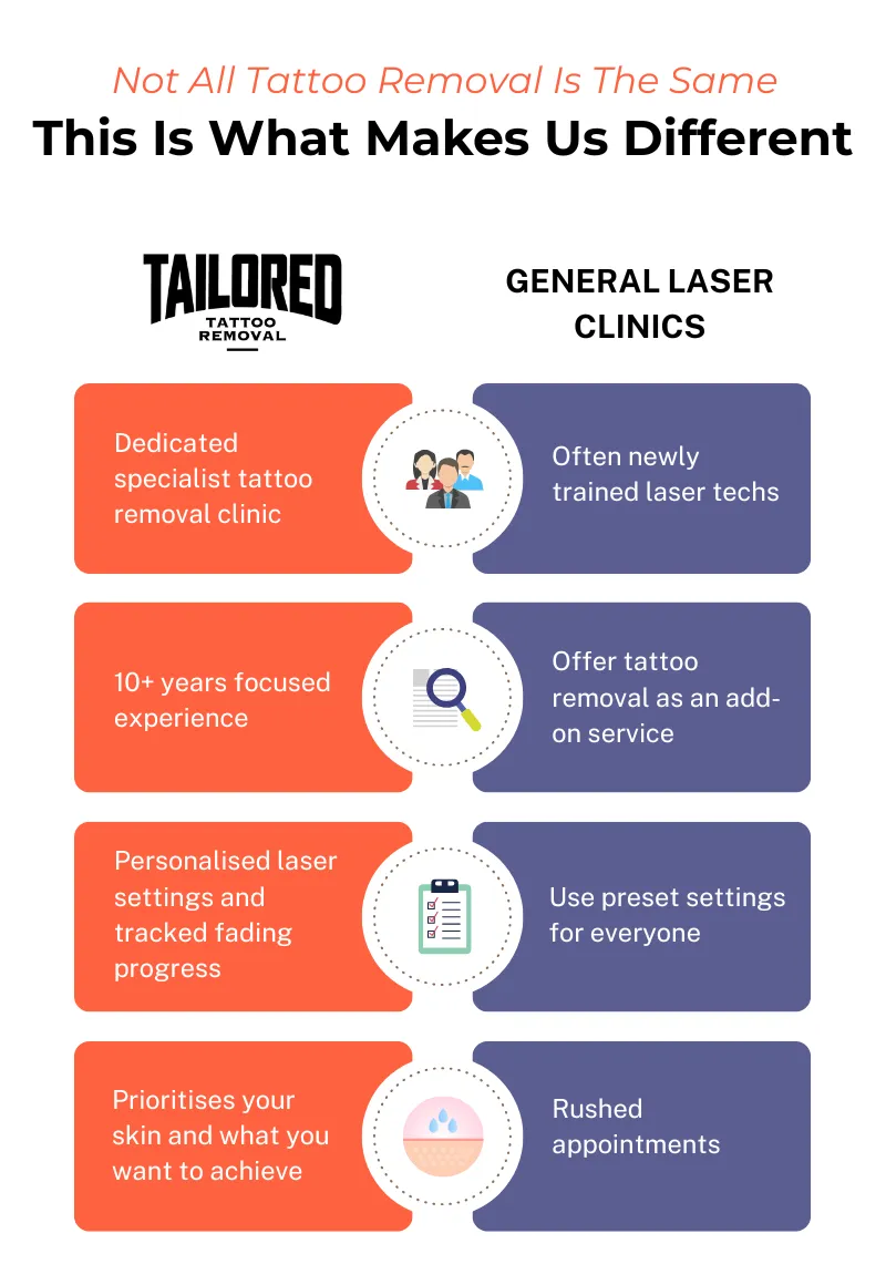 Over 10 years of specialist experience. Thousands of treatments performed. Advanced medical-grade laser technology. Tailored treatment plans based around your tattoo, your skin and your goals.